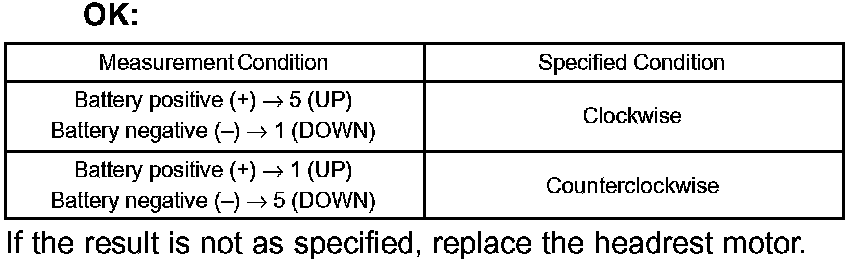1. Check if the motor rotates smoothly when the battery is connected to the headrest motor connector terminals.
