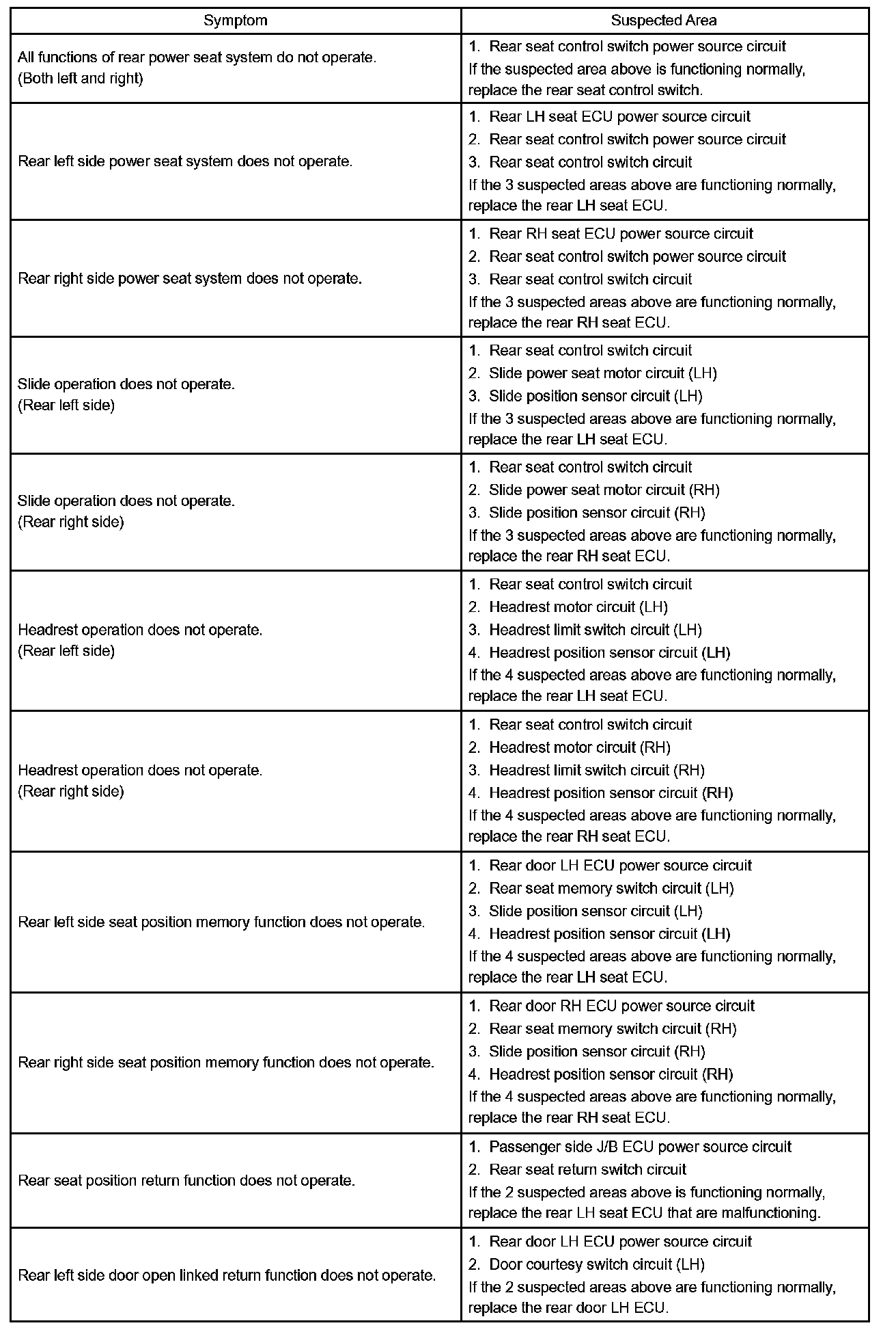 Rear Power Seat Control System