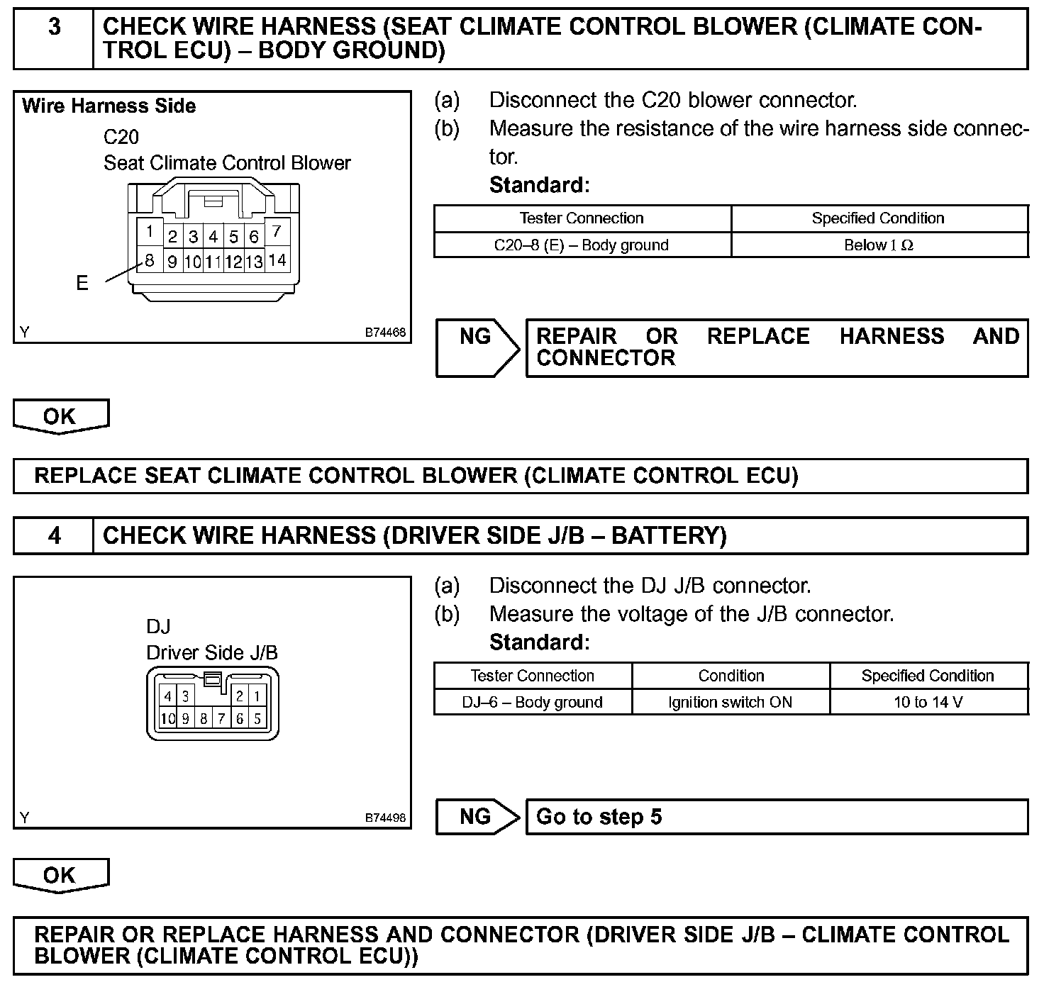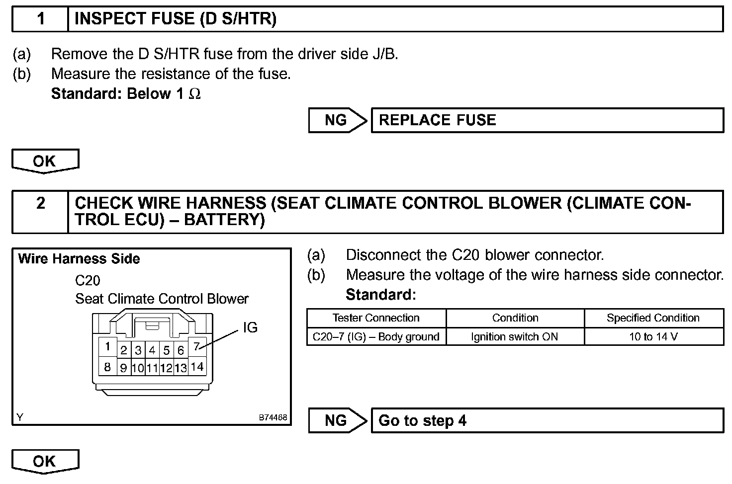 If the climate control seat does not operate, the seat climate control blower (climate control ECU) or the wire harness may be malfunctioning.