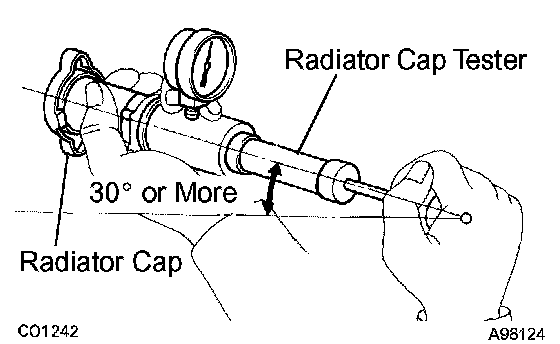 a. Using a radiator cap tester, slowly pump the tester and check that air is being released from the vacuum valve.