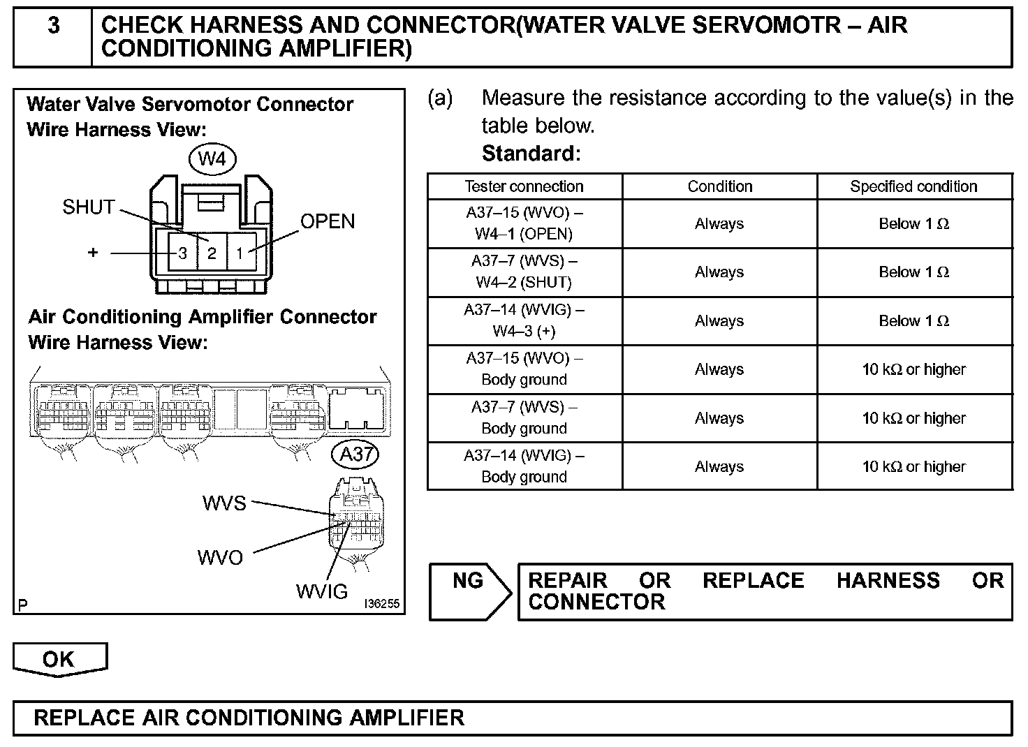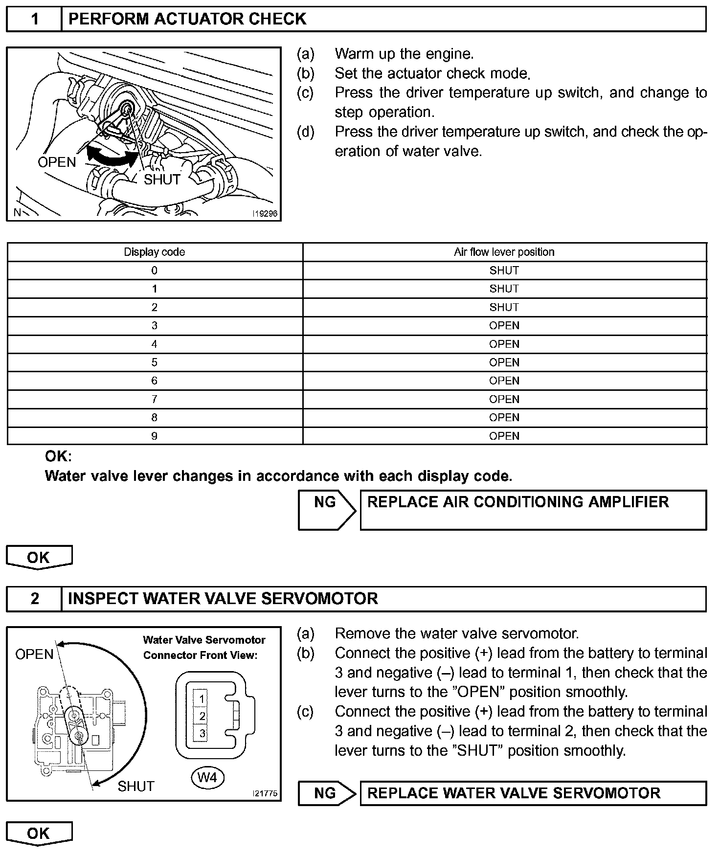 CIRCUIT DESCRIPTIONThis circuit controls the amount of the coolant flowing to the heater core by a signal from the A/C amplifier, and adjusts the temperature at the air outlets.