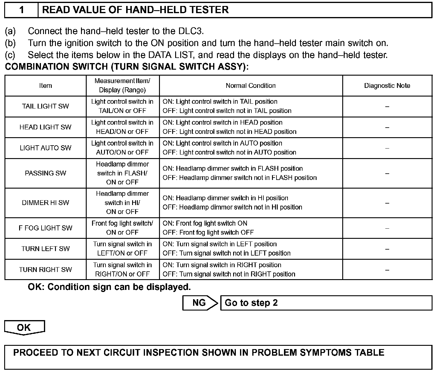 This circuit provides power to operate the combination switch. The signals produced by operating the manual switch are sent to the passenger side J/B ECU.