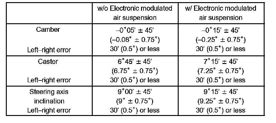 INSPECT CAMBER, CASTER AND STEERING AXIS INCLINATION