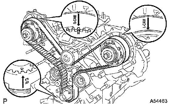 HINT: Turn the camshaft timing pulleys slightly clockwise to make installation of the timing belt easier.