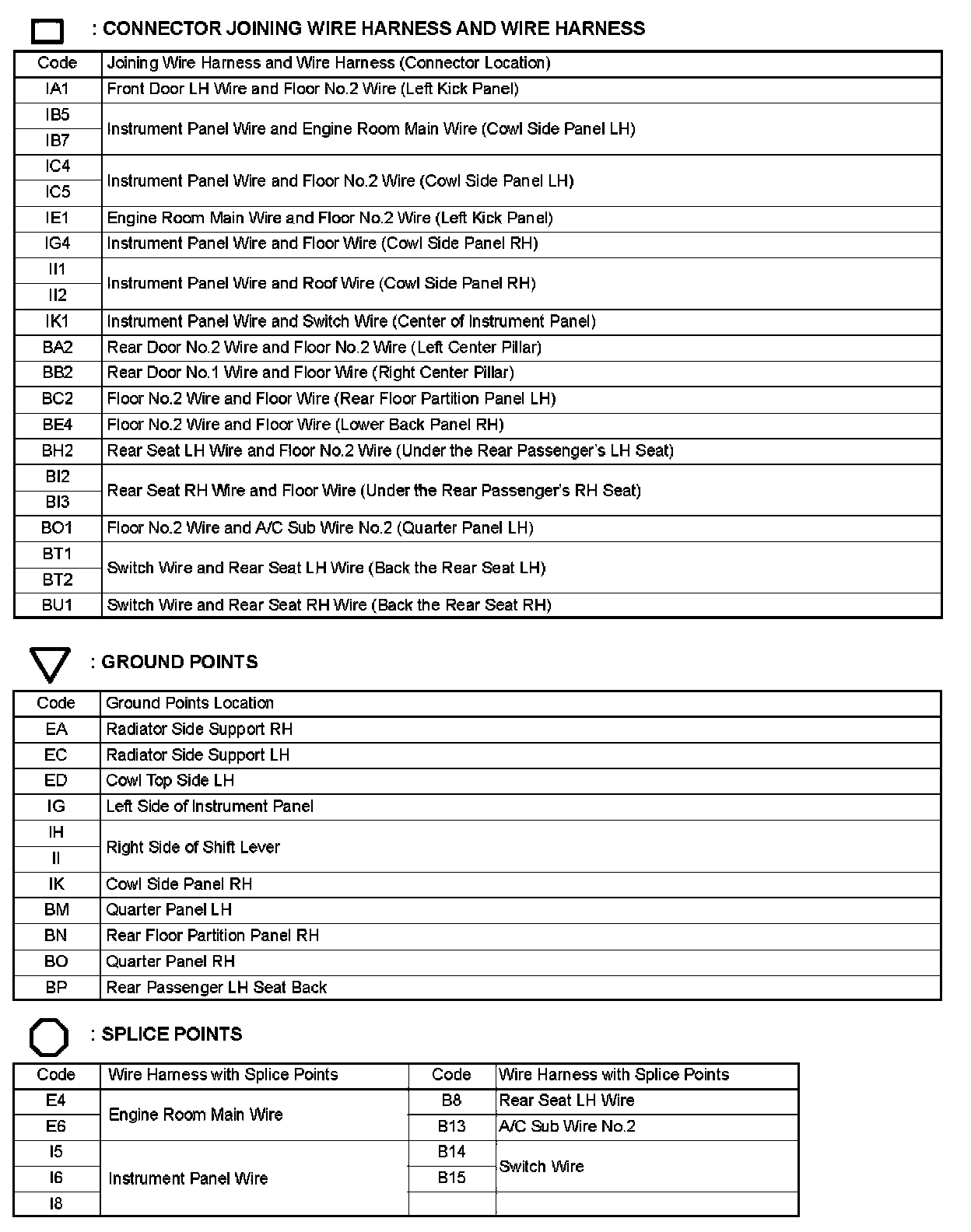 Locations: The locations of components, connectors, ground points, and splices referred to within these diagrams can be found at Vehicle Locations. Locations