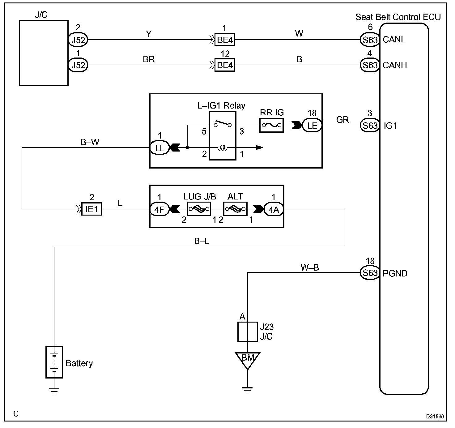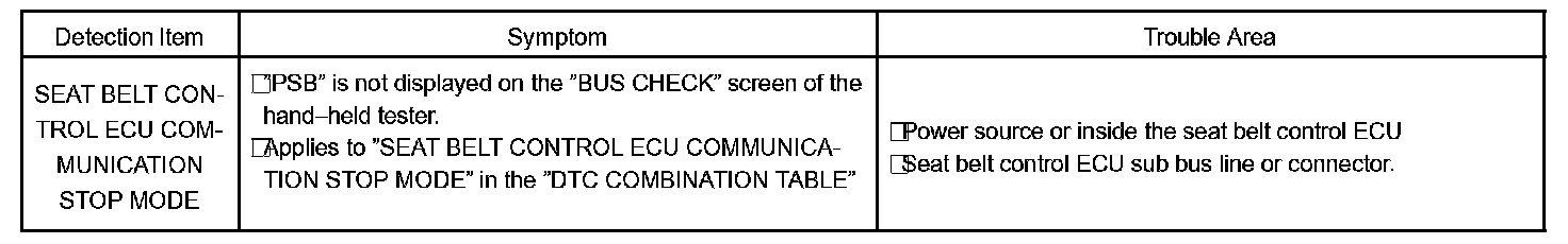 Seat Belt Control ECU Communication Stop Mode