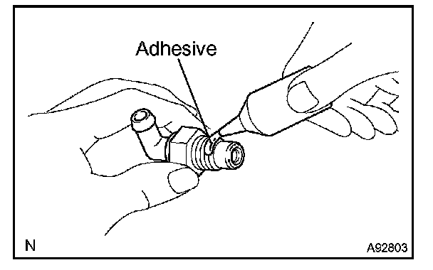 1. Apply adhesive to 2 or 3 threads.