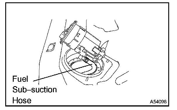 a. Lift up the fuel pump and sender gauge. Disconnect the fuel sub-suction hose from the fuel return jet tube, and remove the fuel pump, sender gauge and gasket.