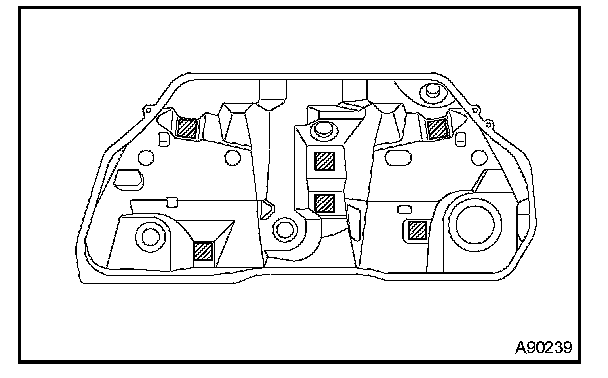 a. Attach the fuel tank cushions to the areas marked with diagonal lines in the illustration.