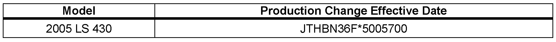 - 2005 model year LS 430 vehicles produced BEFORE the Production Change Effective VINs shown below.