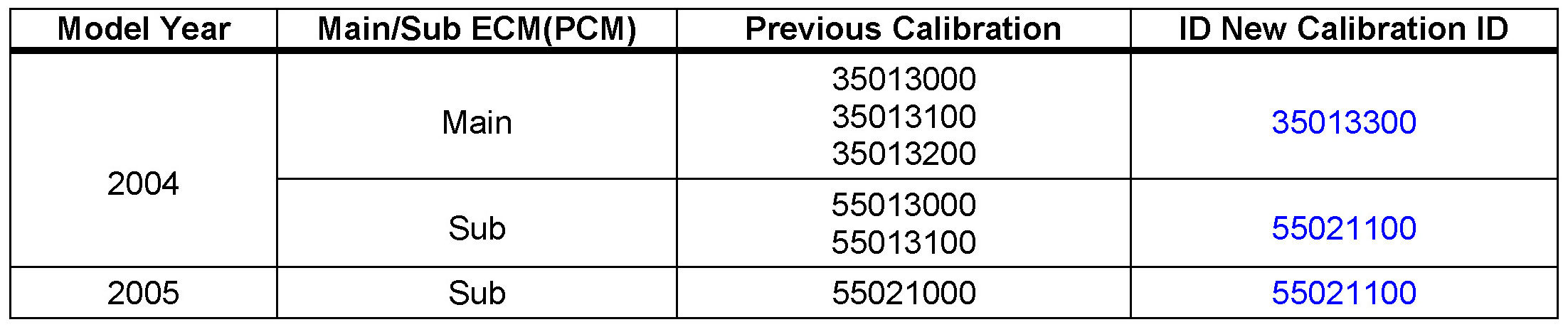 - If Calibration ID matches "New Calibration ID" as shown in Calibration Identification chart, this vehicle has already been reprogrammed.