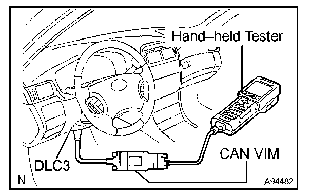 a. Connect the hand-held tester (with CAN VIM) to the DLC3.