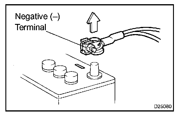 NOTE: After disconnecting the negative (-) terminal, it is necessary to perform the initialization of certain systems.