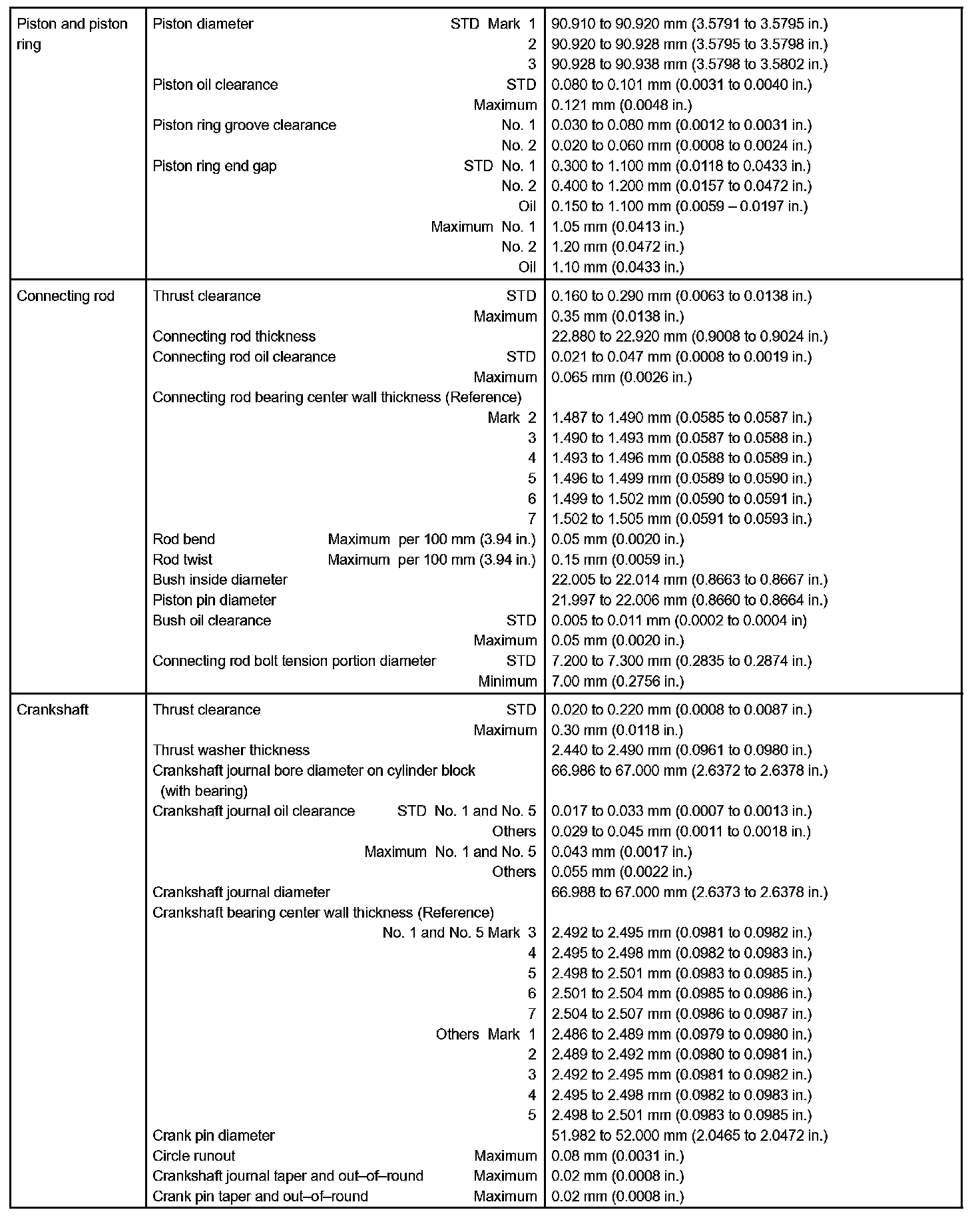 Engine Mechanical - Service Data Part 2:
