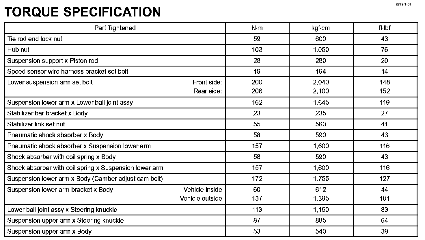 Front Suspension - Torque Specification: