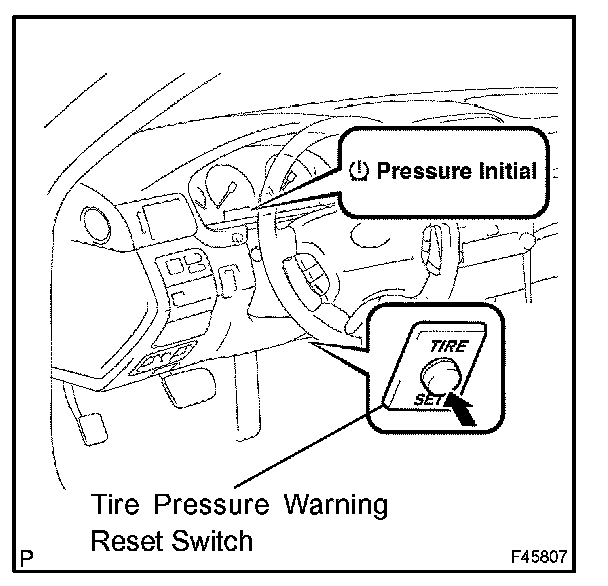 HINT: If the "Pressure Initial" indicator comes on while the vehicle is being driven, the initialization may have failed. If so, perform the initialization again. (Turn the ignition switch off and retry from step 1-(a).)