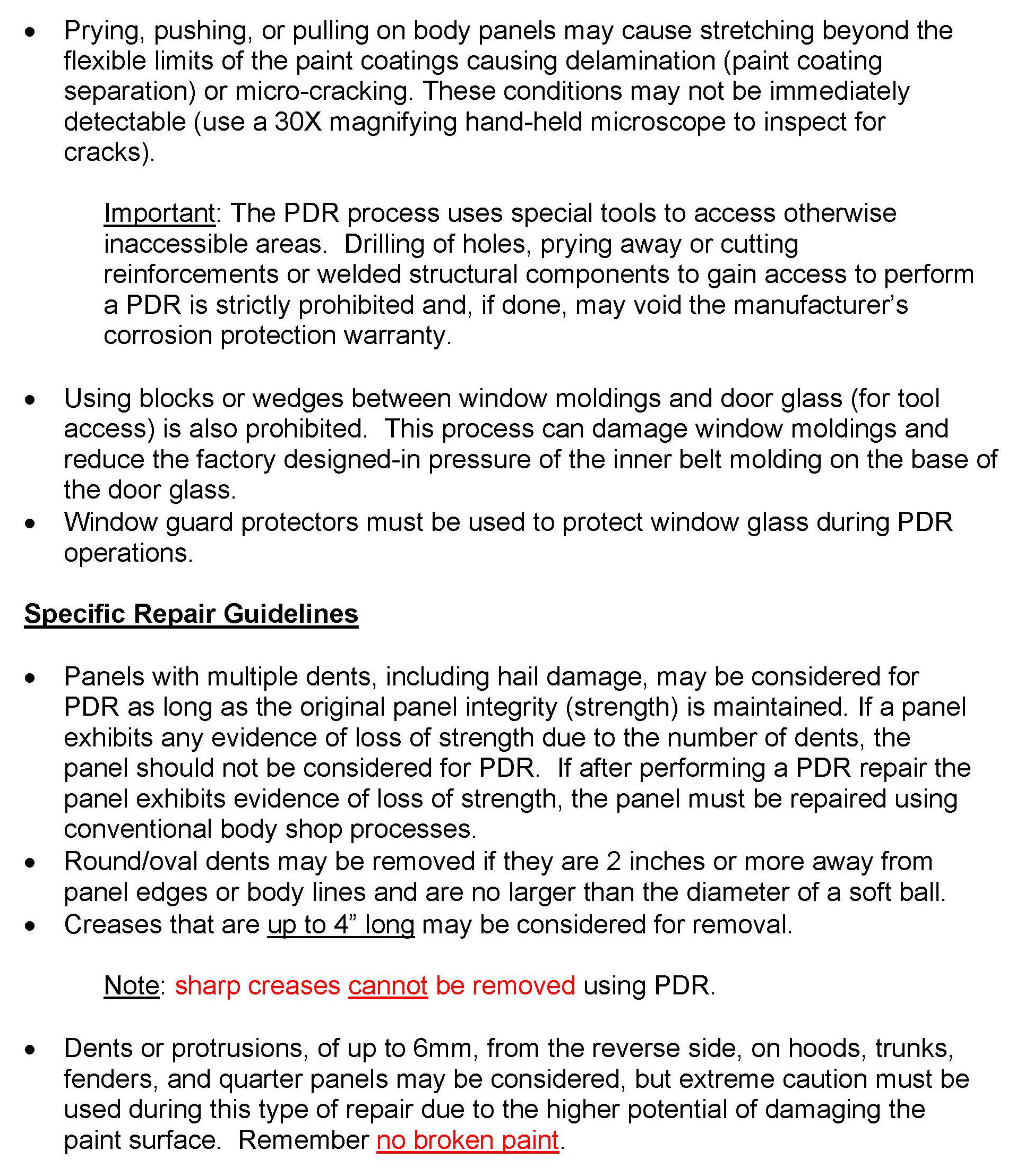 Body - Paintless Dent Repair Guidelines