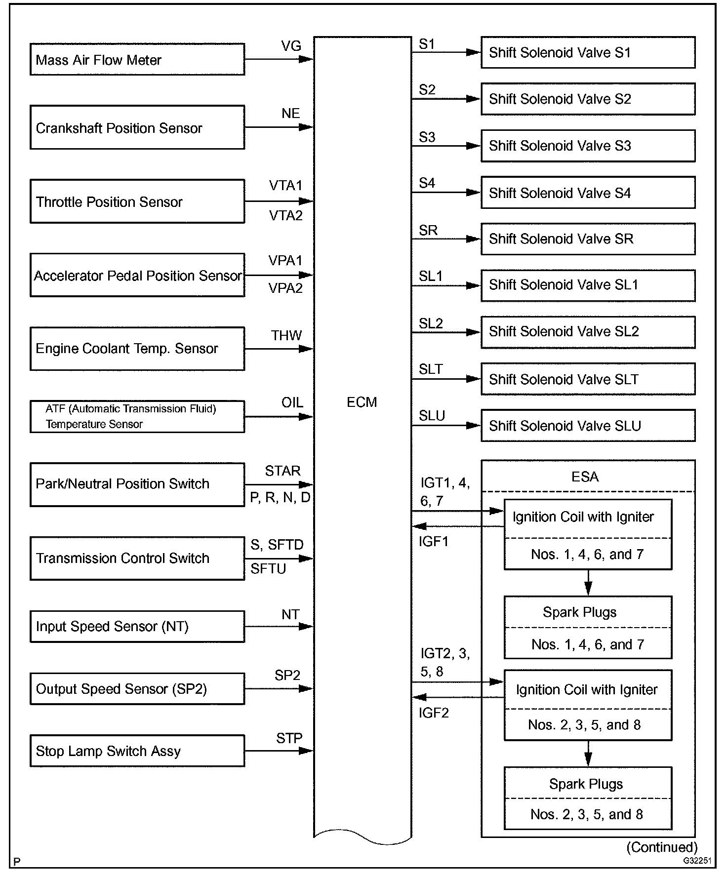 The configuration of the electronic control system in the A761E automatic transmission is as shown in chart.