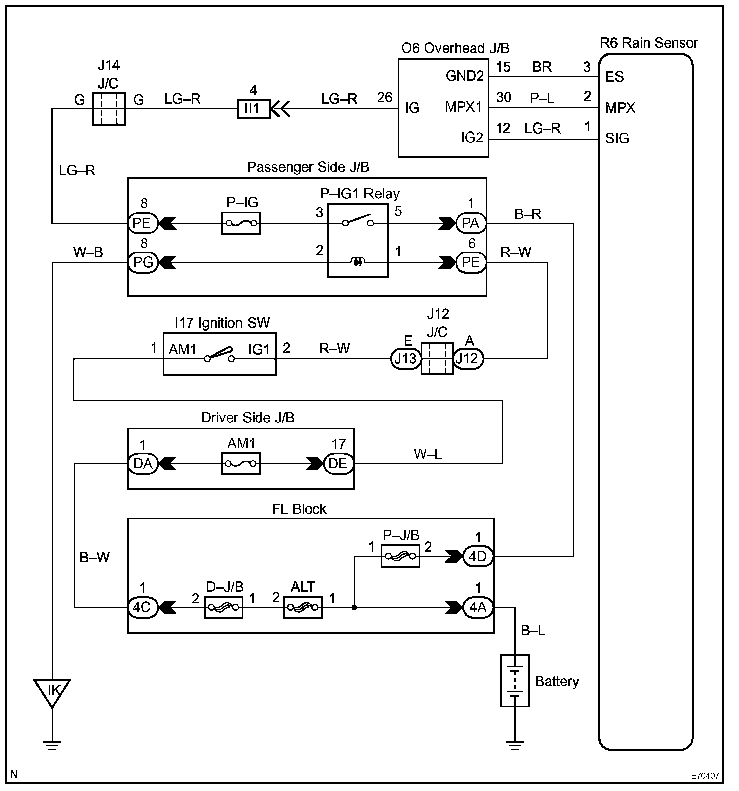 The rain sensor is connected to each ECU at the multiplex communication circuit.