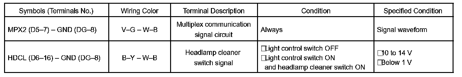 Terminals Of ECU / Pinouts - Headlamp Cleaner Control Relay: