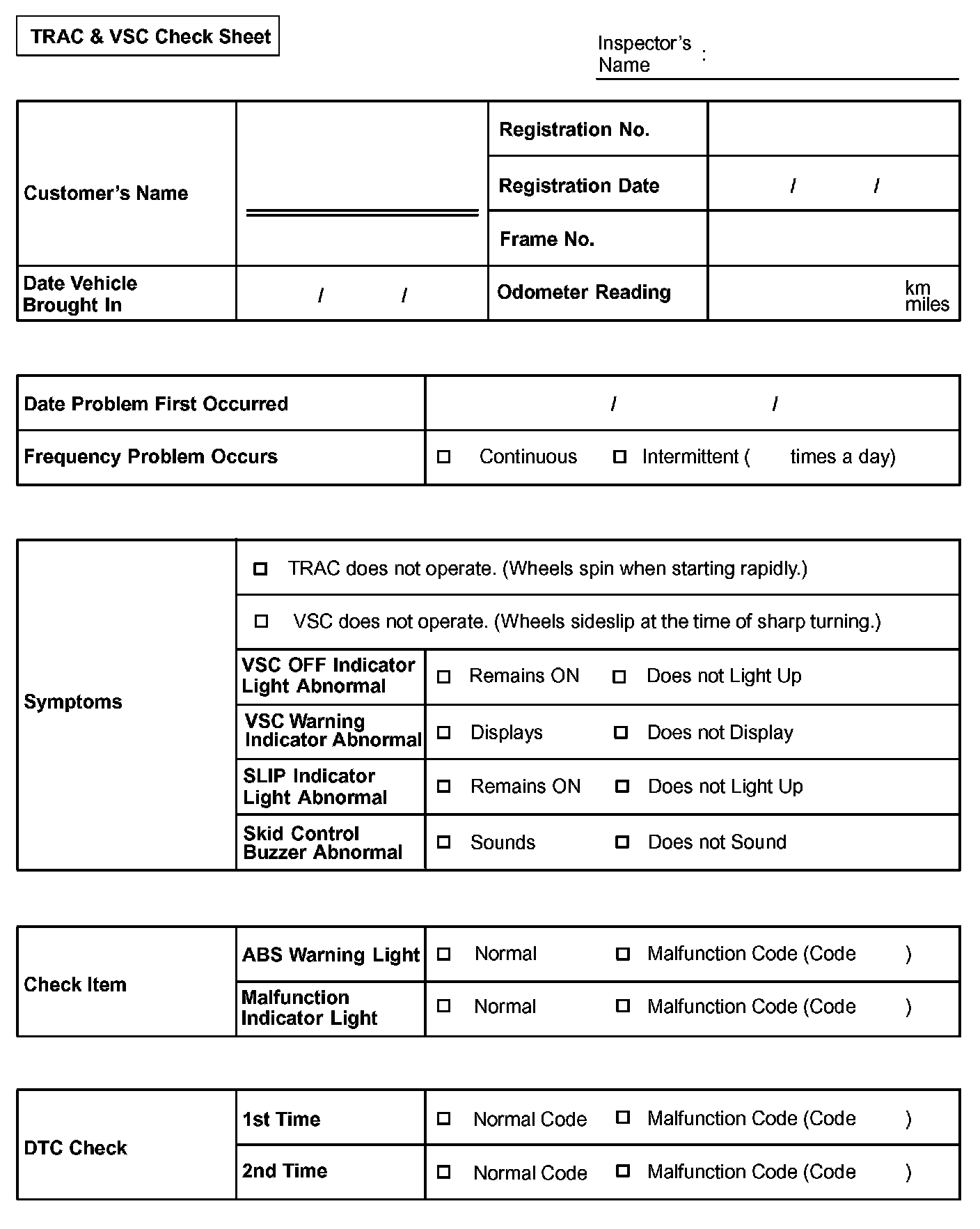TRAC & VSC Check Sheet: