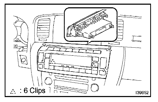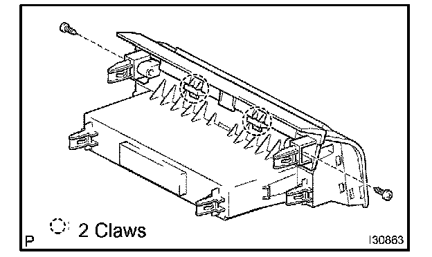 (b) Disengage the 2 claw fittings and remove the console upper panel garnish FR from the air conditioner control assy.