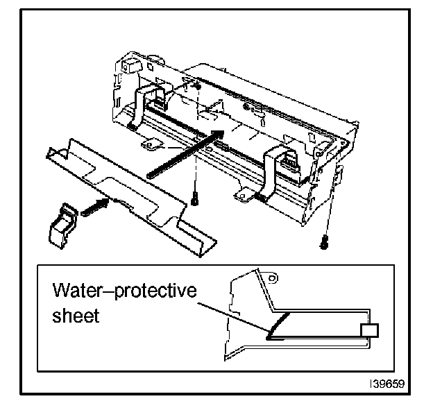 - Insert the water-protective sheet into the heater control housing as shown in the illustration.