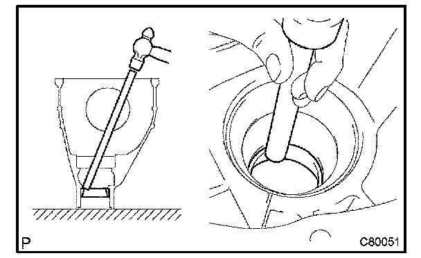 (b) Using a brass bar and a hammer, remove the front bearing outer race.