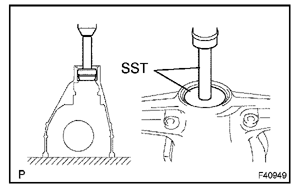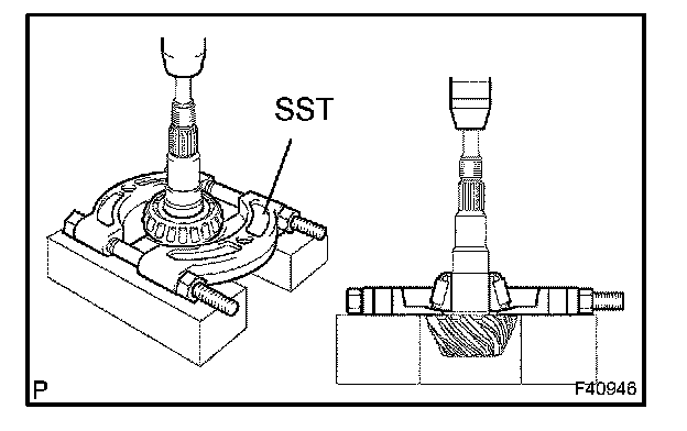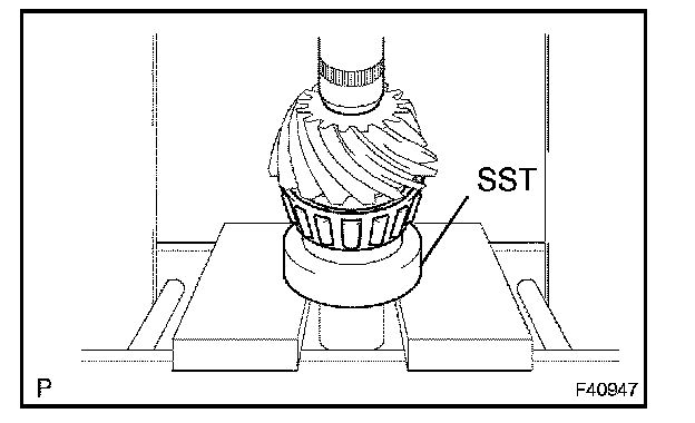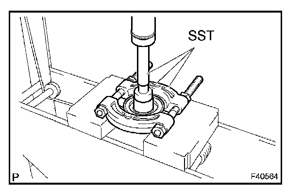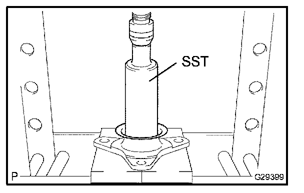 (a) Using SST and a press, remove the rear bearing from the drive pinion.