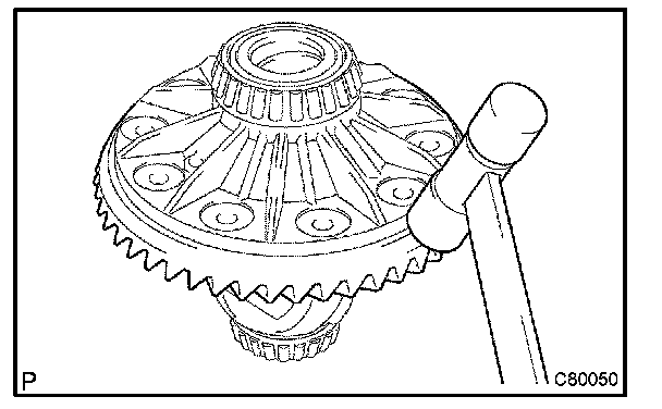 (c) Using a plastic hammer, tap on the ring gear to separate it from the differential case.