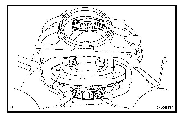 (a) Install the drive side bearing in the differential carrier first, as shown in the illustration, then install the differential case.