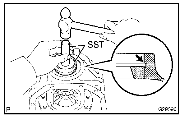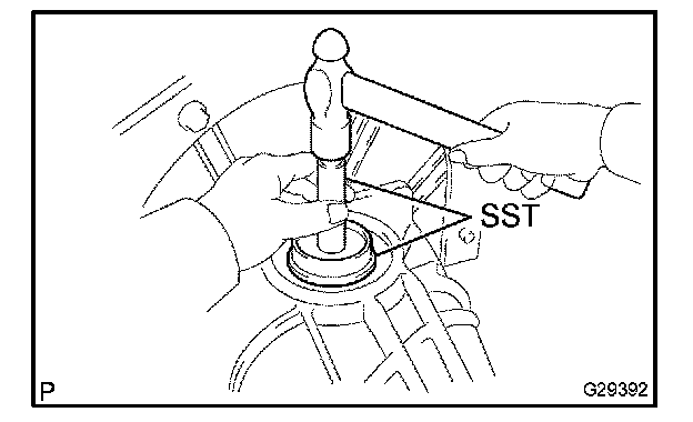 (a) Using SST and a hammer; install the drive pinion side outer race.