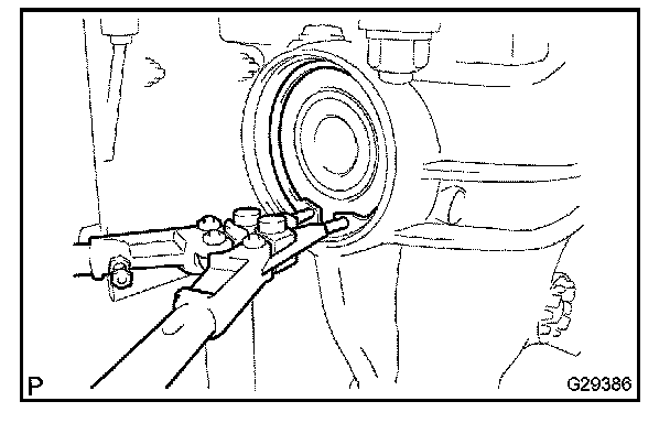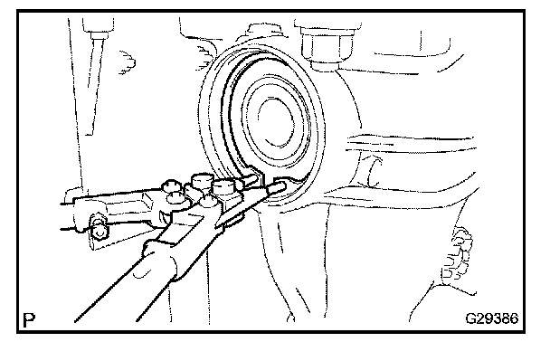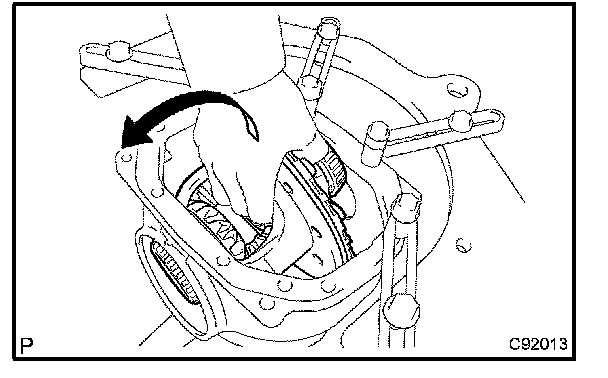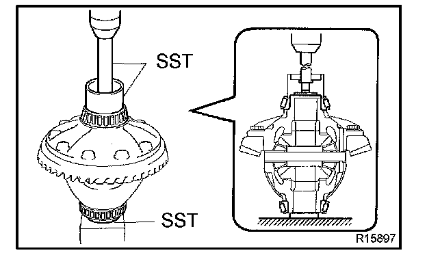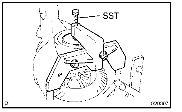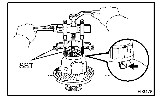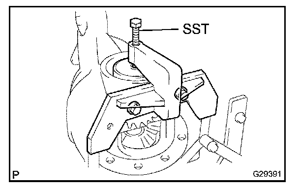 Hook the claws of the SST to the bearing inner race from the differential case.