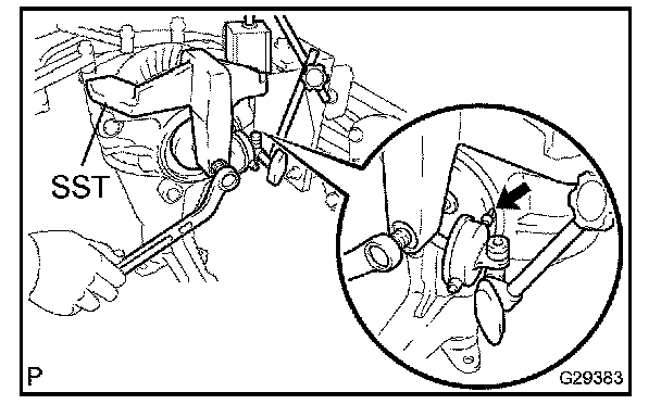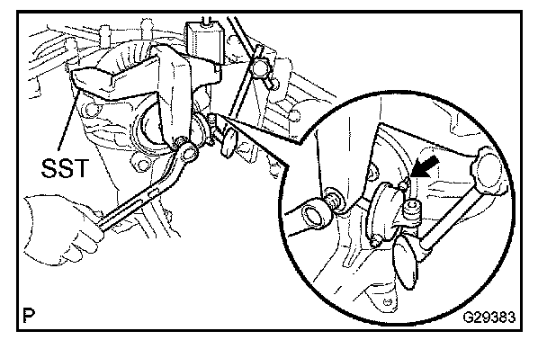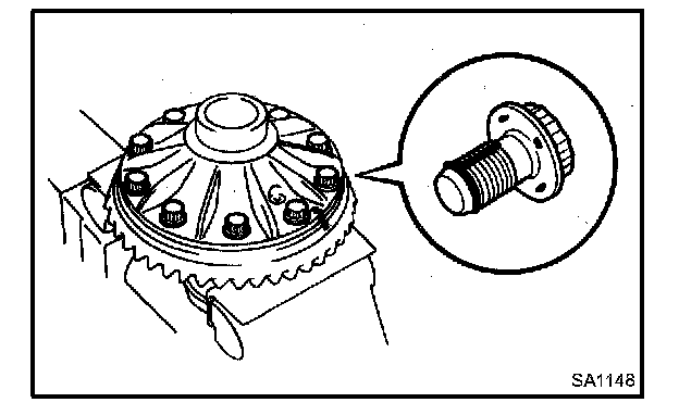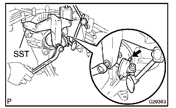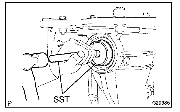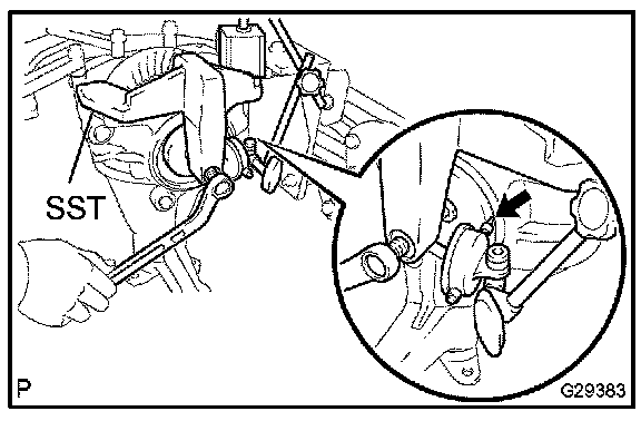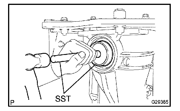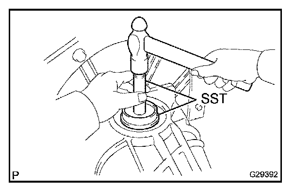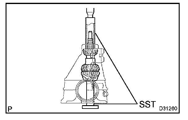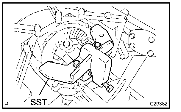 - Tighten the SST bolt to apply the preload to the case bearing.