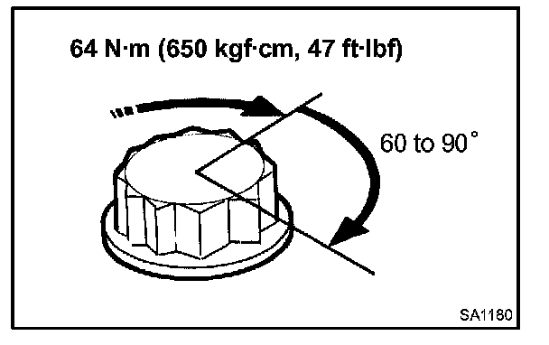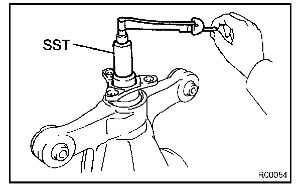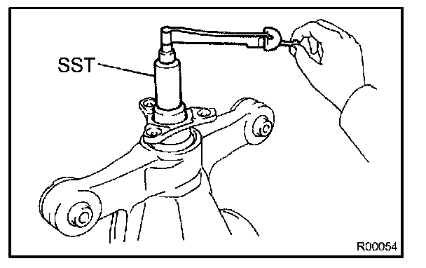 HINT: Tighten the nut using approximately 98 Nm (1,000 kgf-cm, 72 ft lbf) of force and then tighten it further while observing the preload.