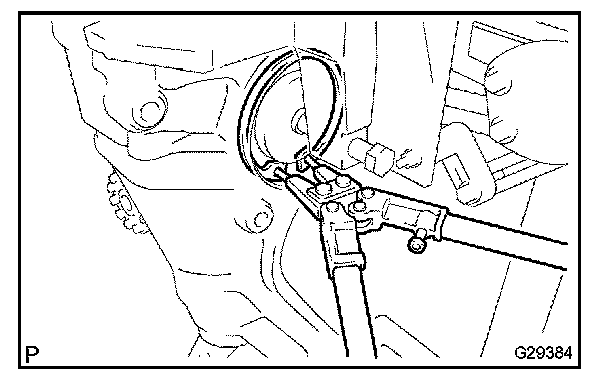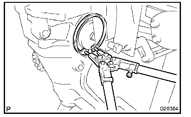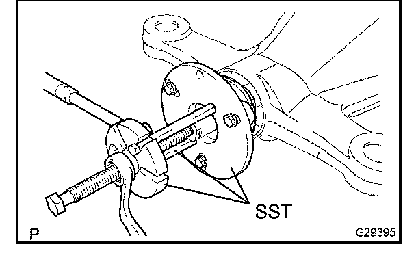 (d) Remove the dial indicator and loosen the bolt until the SST disc is separated from the outer race.