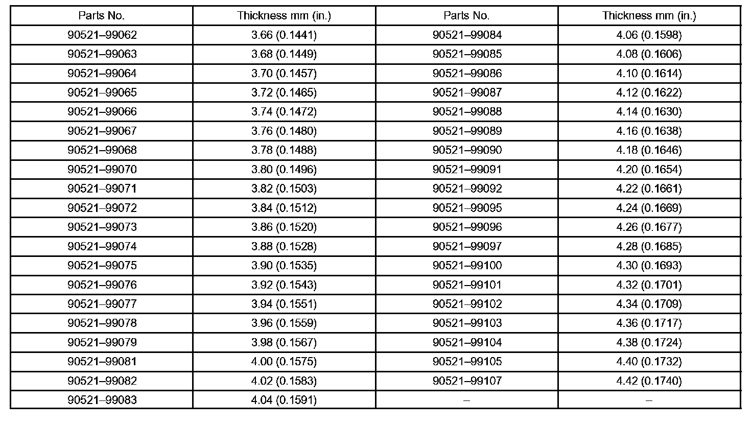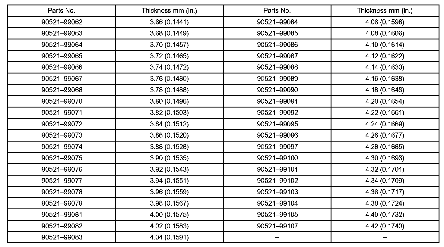 HINT: There are 42 thicknesses of the rear differential drive pinion plate washers available in 0.01 mm (0.04 in.) difference.