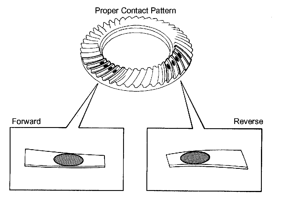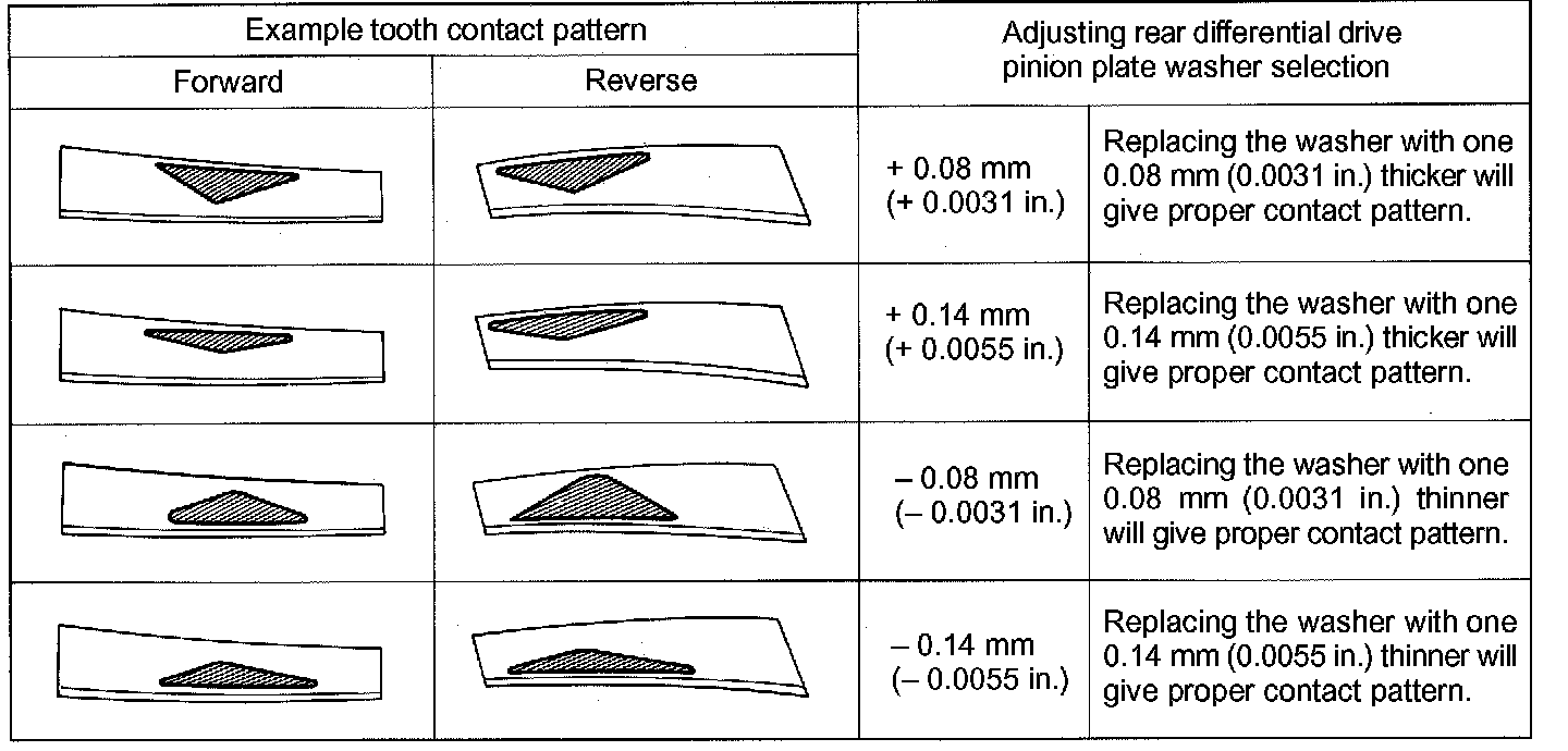 If tooth contact pattern is not correct, replace the adjusting washer installed on the front of the drive pinion rear bearing to adjust it.