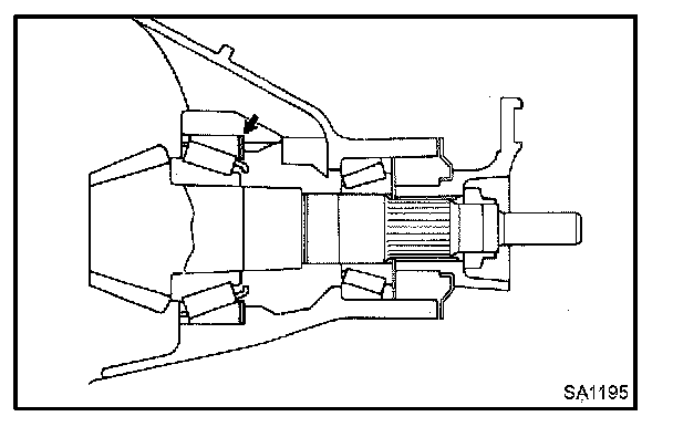 - If the measured value is out of the specified value, adjust it by increasing or decreasing the thickness of both right and left side gear shaft shaft snap ring equally.