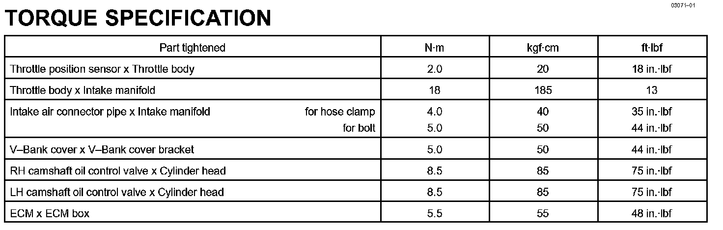 Engine Control System - Torque Specification: