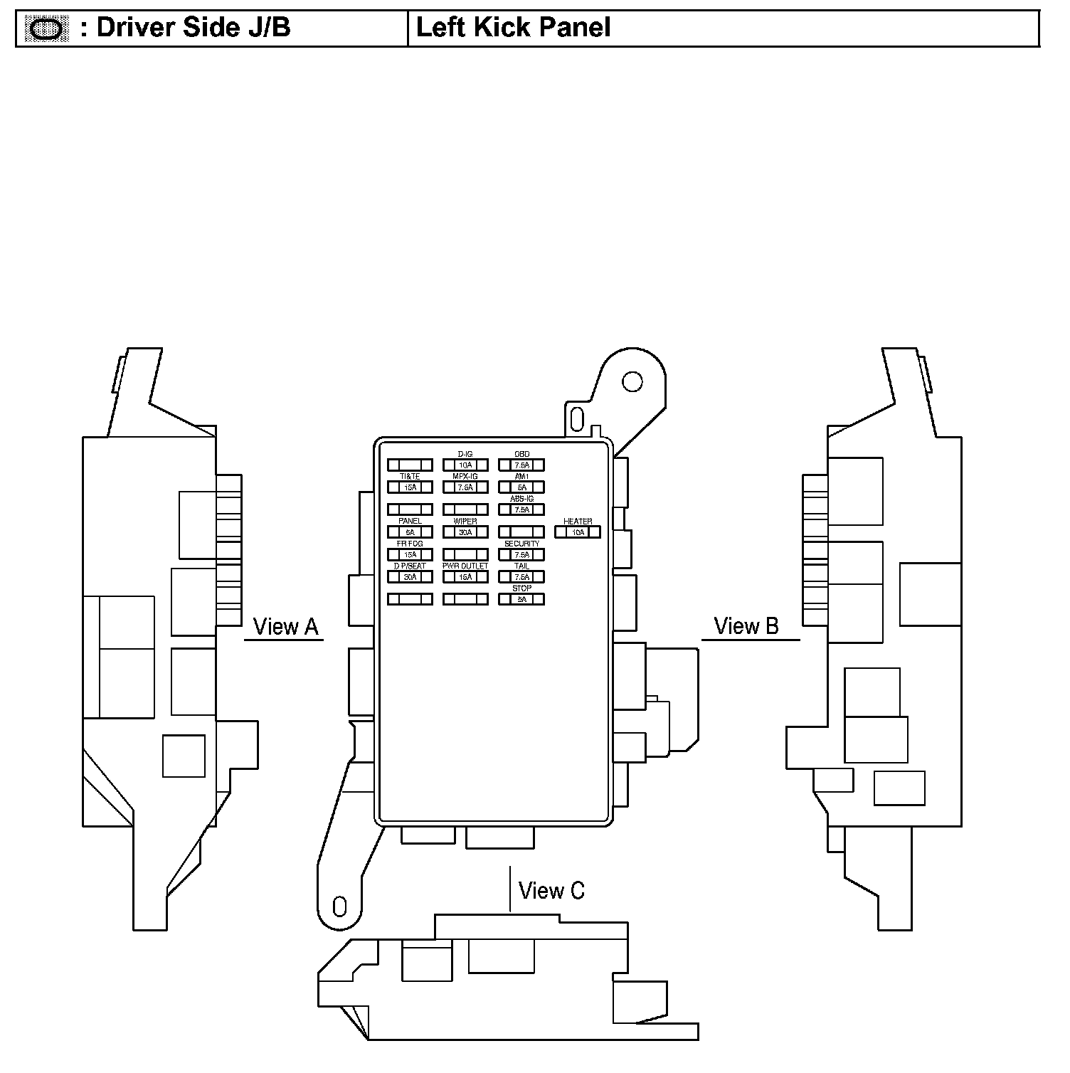 Driver Side J/B - Left Kick Panel: