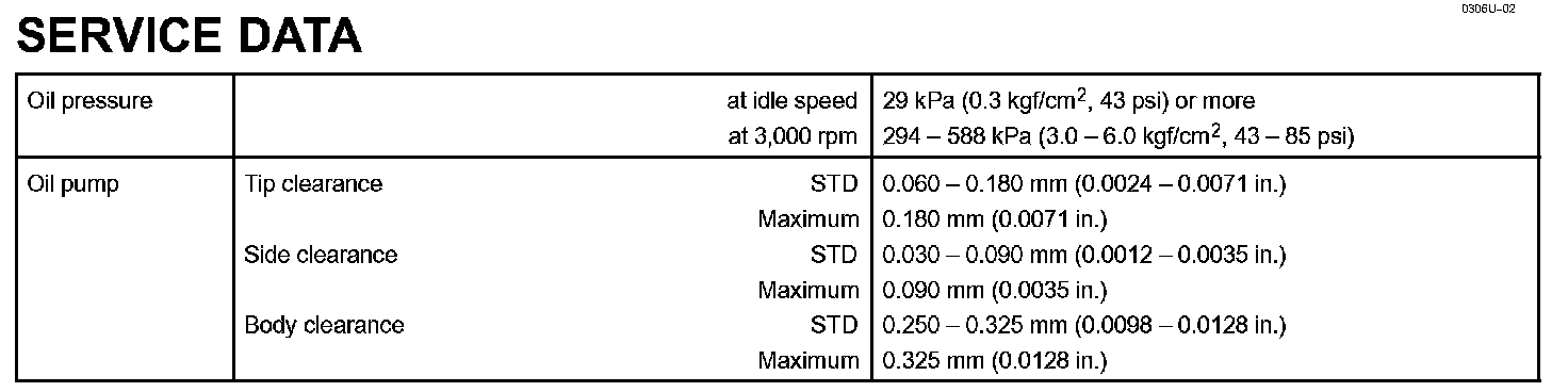 Lubrication - Service Data: