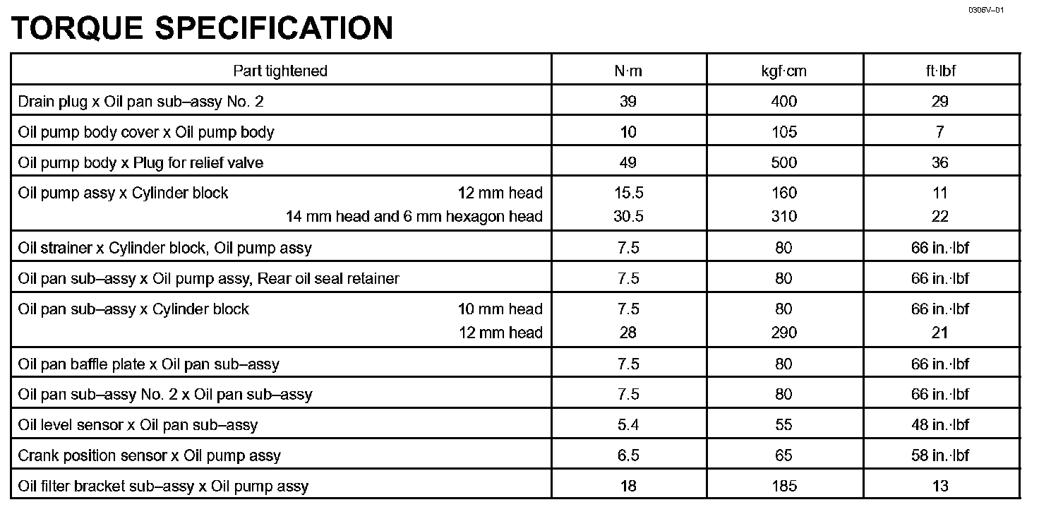 Lubrication - Torque Specification: