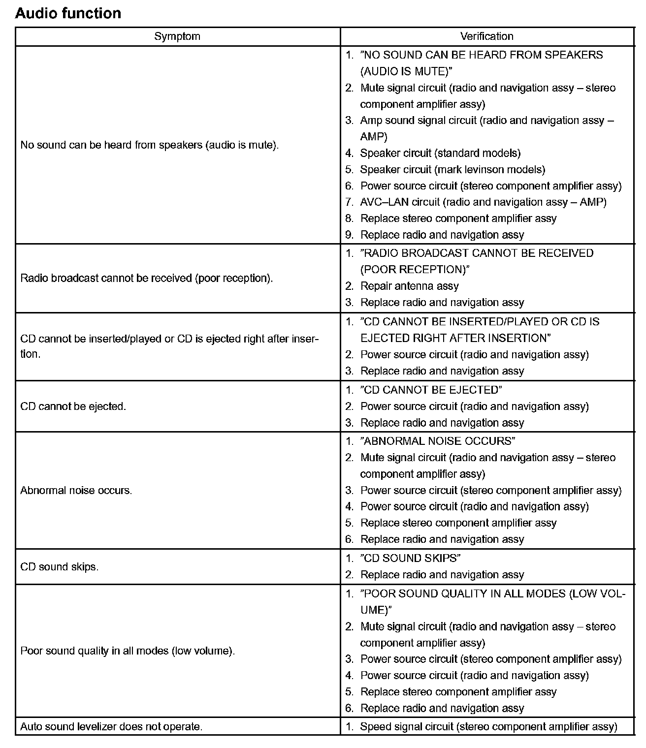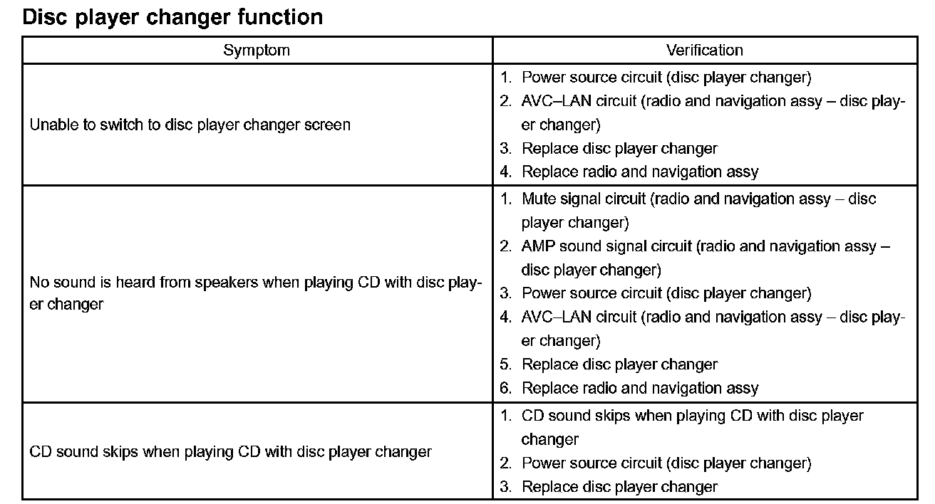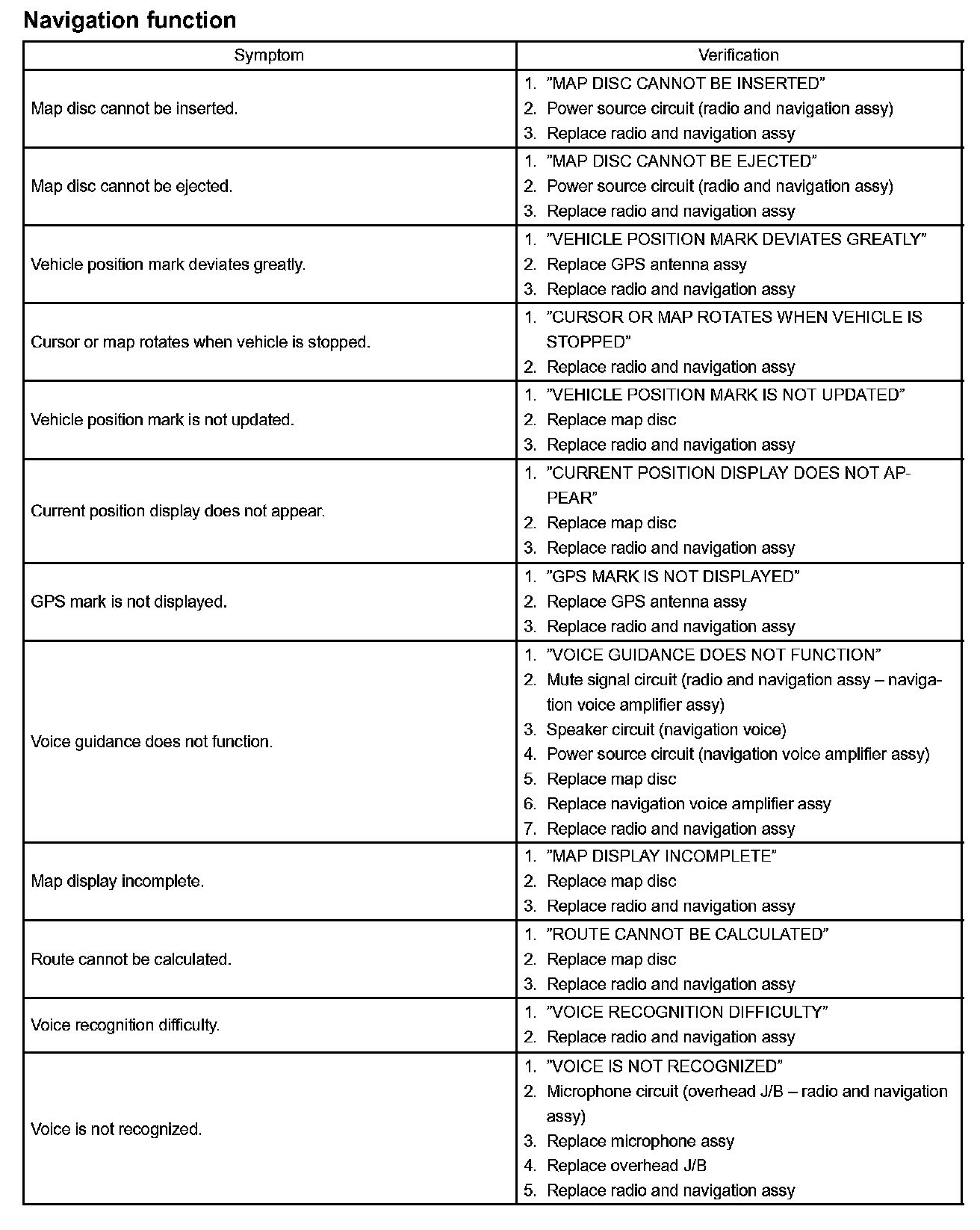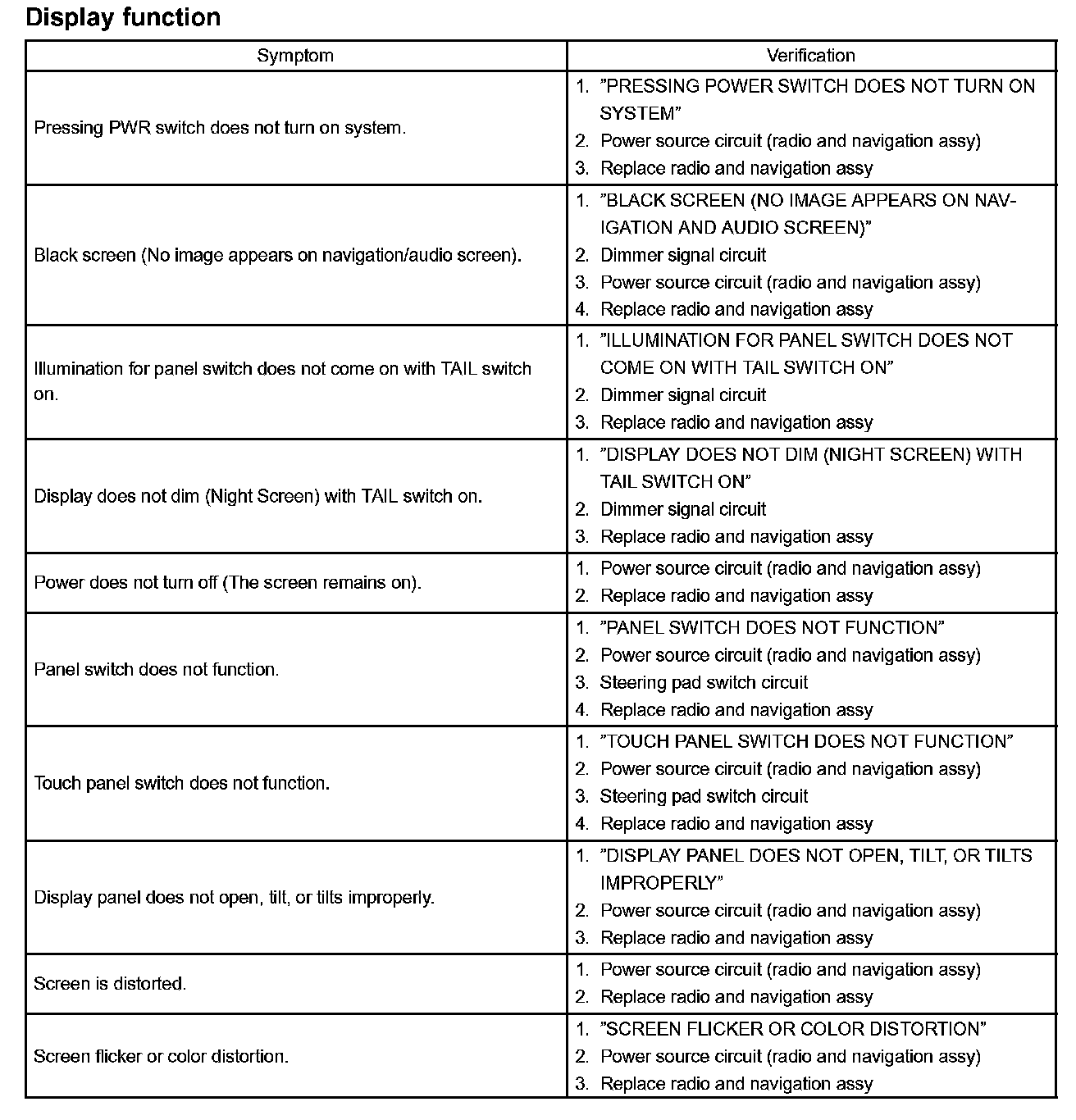 Methods used to verify the cause of the problem are listed in order of probability in the verification column.
