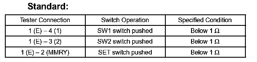k. Check that the seat does not move (the seat position is not recorded) when the SW1 switch or the SW2 switch is pressed after the SW1 switch and SW2 switch are pressed together while the SET switch is held down.