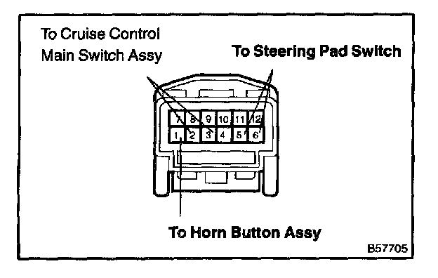 c. Disengage the wiring pins other than the cruise control main switch assembly from the connector, and pull them out.
