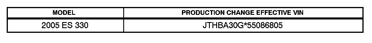 ^ 2005 model year ES 330 vehicles produced BEFORE the Production Change Effective VIN shown below.
