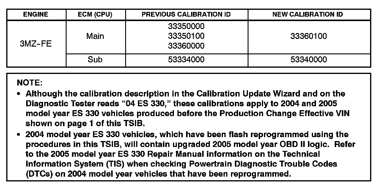Under certain driving conditions, some 2004 and 2005 model year ES 330 vehicles may exhibit a M.I.L. "ON" with at least one of the following DTCs: