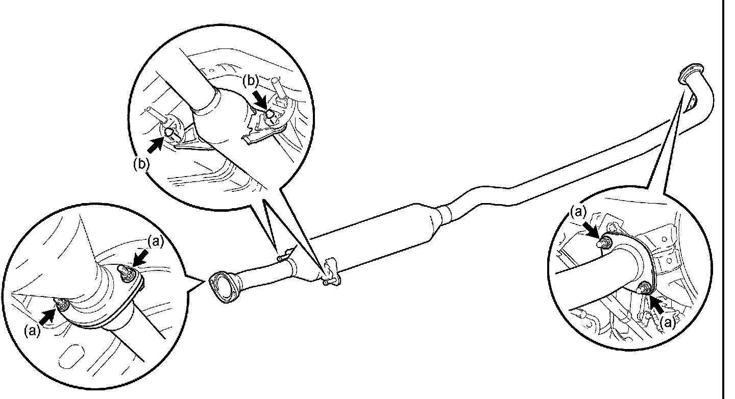 (b) Remove the exhaust pipe center and 2 gaskets from the 2 exhaust pipe supports.