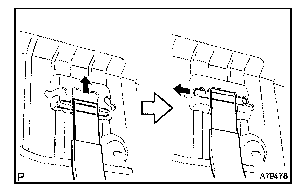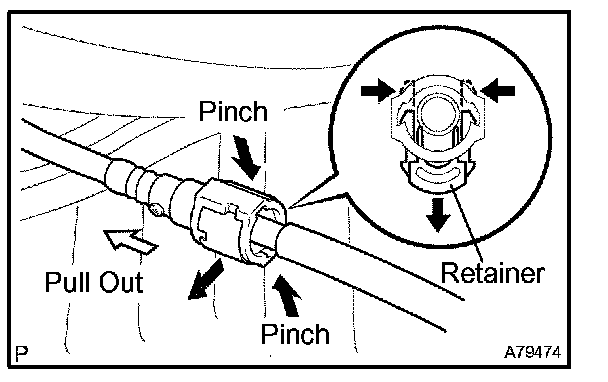 (1) Pinch the projection of the retainer to remove the lock claws, then pull it down as shown in the illustration.